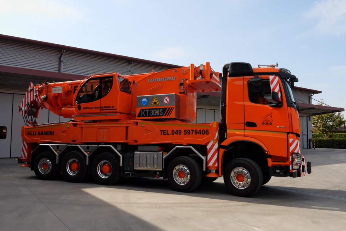 Our flagship: the new Idrogru KT300.26 S HE step up on a five-axle Mercedes-Benz truck, is probably the most powerful model available on the multifunctional crane market. Ideal for various industrial uses, which require a lot of capacity in confined spaces, thanks to its innovative features: