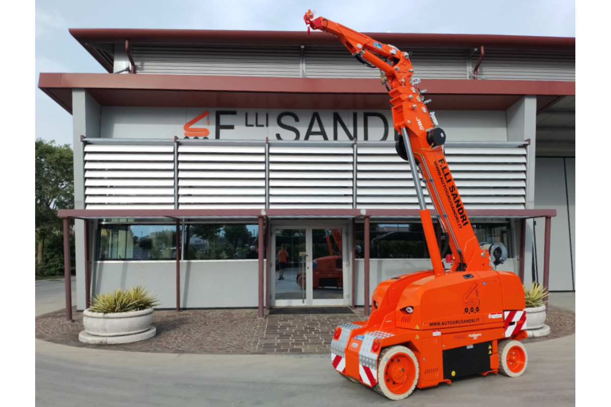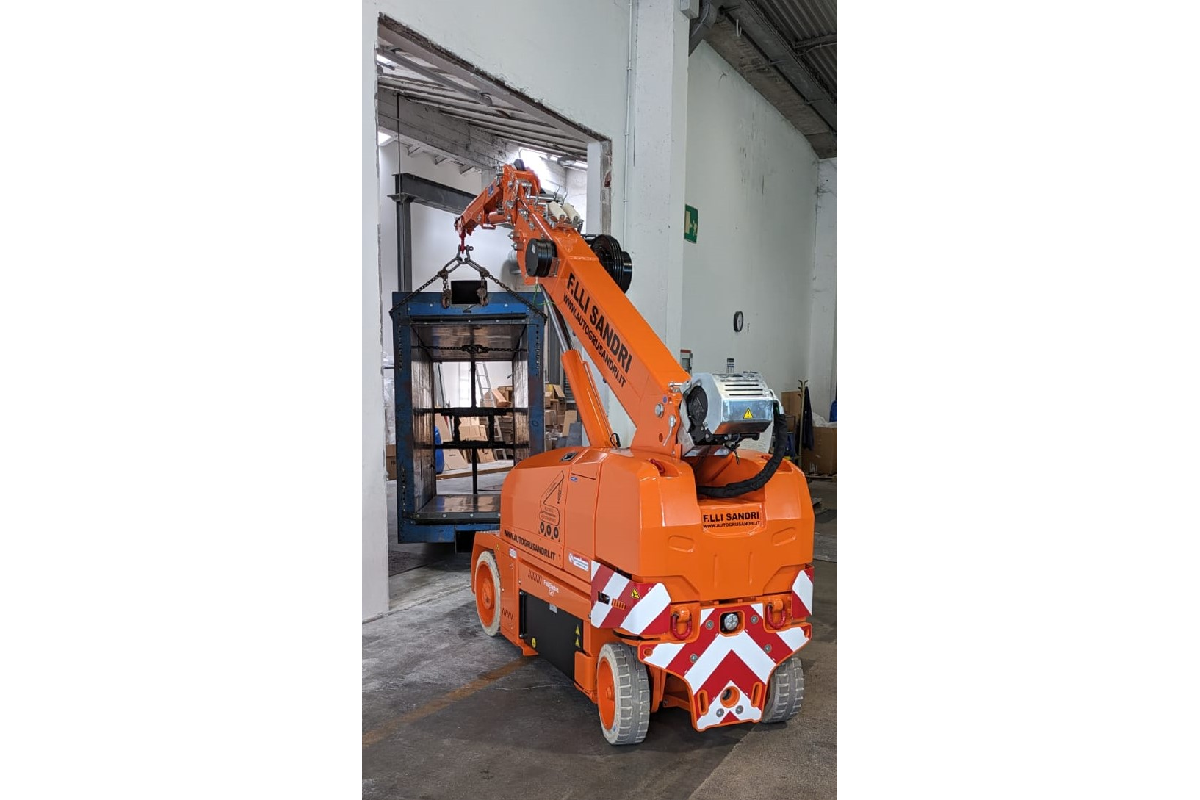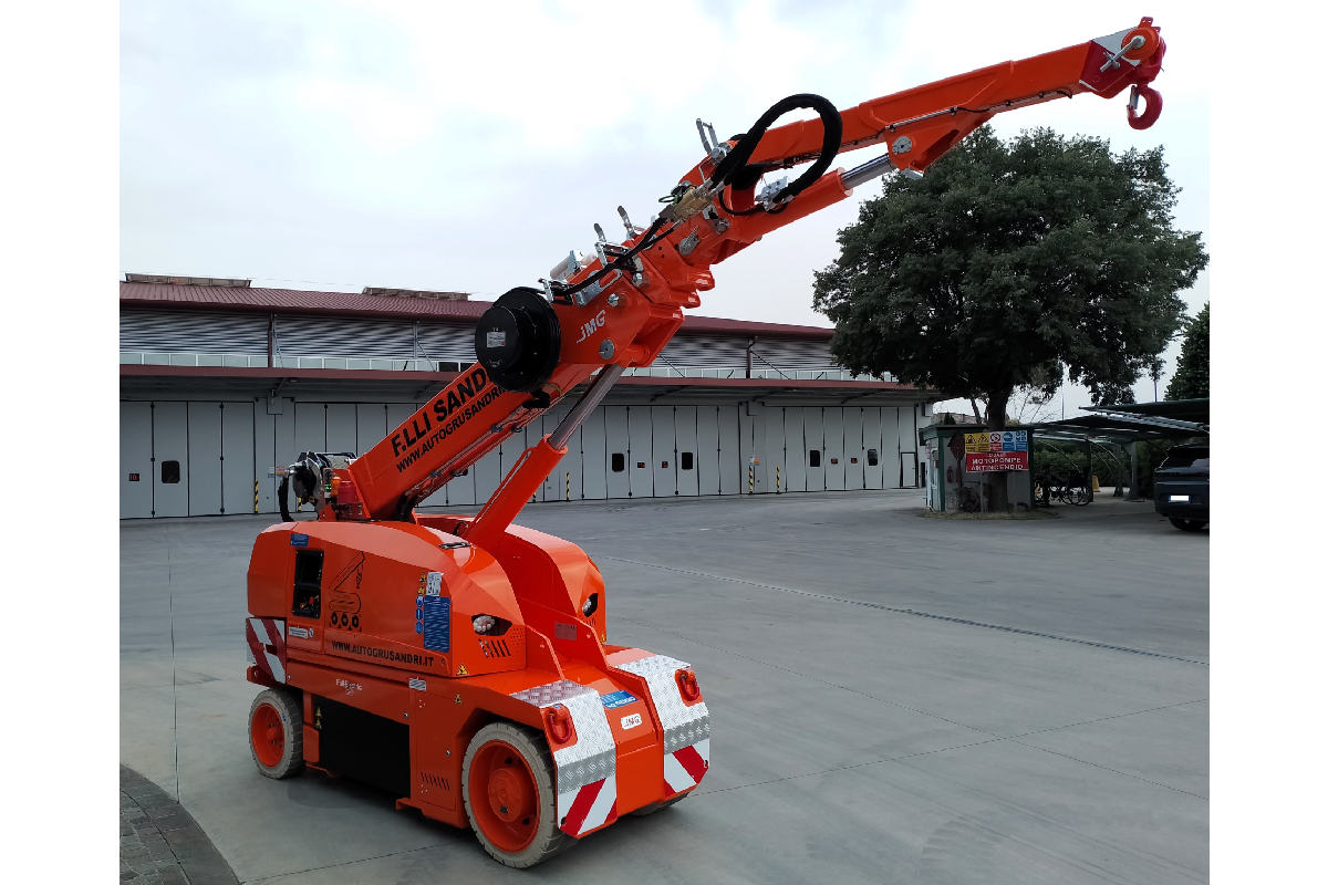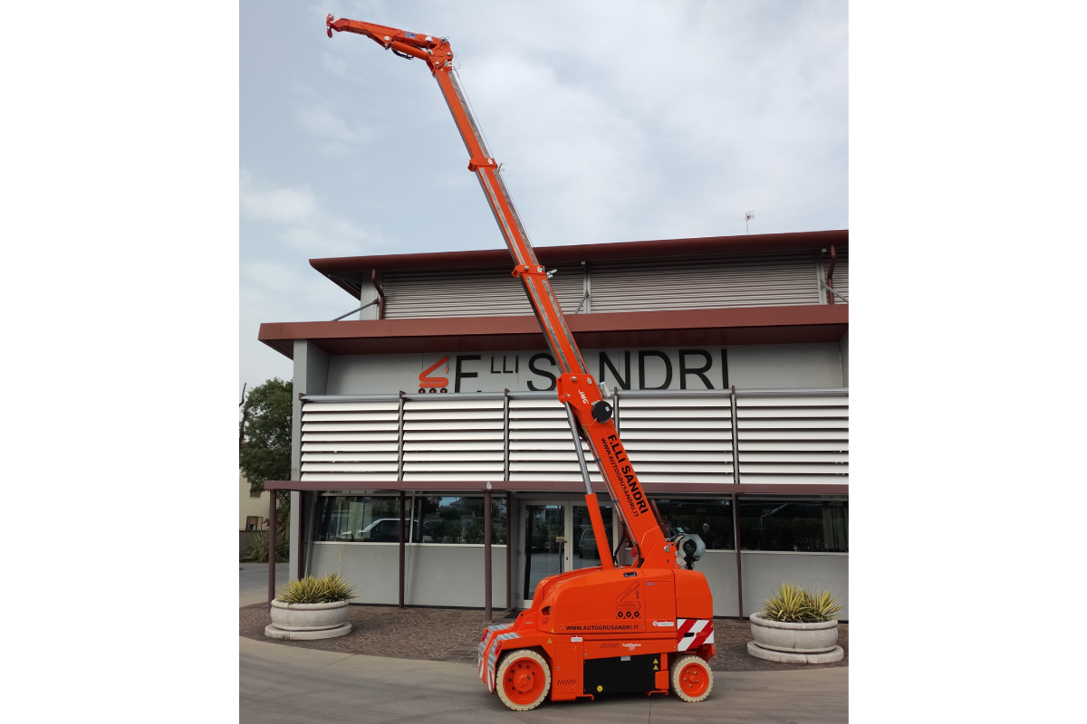 Of course! The solution designed by F.lli Sandri is the new JMG MC45SB electric self-propelled crane. Thanks to its very compact dimensions (height 1595, length 2390 and a width of just 930 millimetres) this electric self-propelled crane is positioned in the light lifting range of our versatile and innovative fleet.